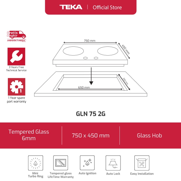 Kompor tanam gas 2 tungku Linea Teka GLN 75 2G