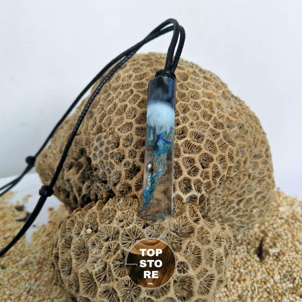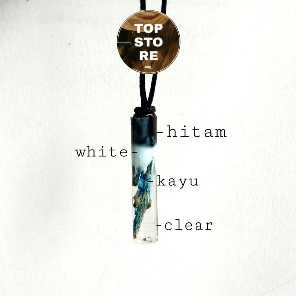 Kalung Wood Resin Tabung Blue // Kalung Distro
