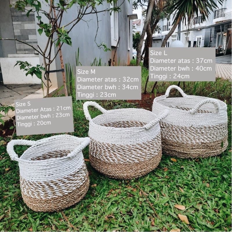 1 Keranjang Bowl Anyaman Seagrass with Handle / Wadah Baju Kotor Mendong / Storage Box Multifungsi / Tempat Serbaguna / Cover Pot / Home Decor / Dekorasi Rumah