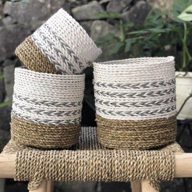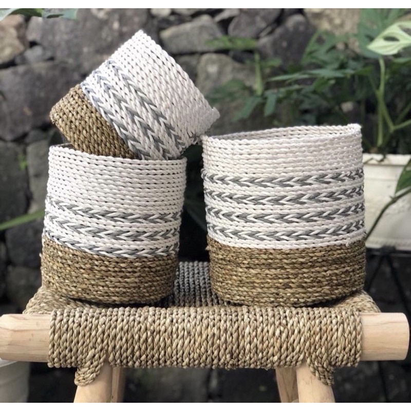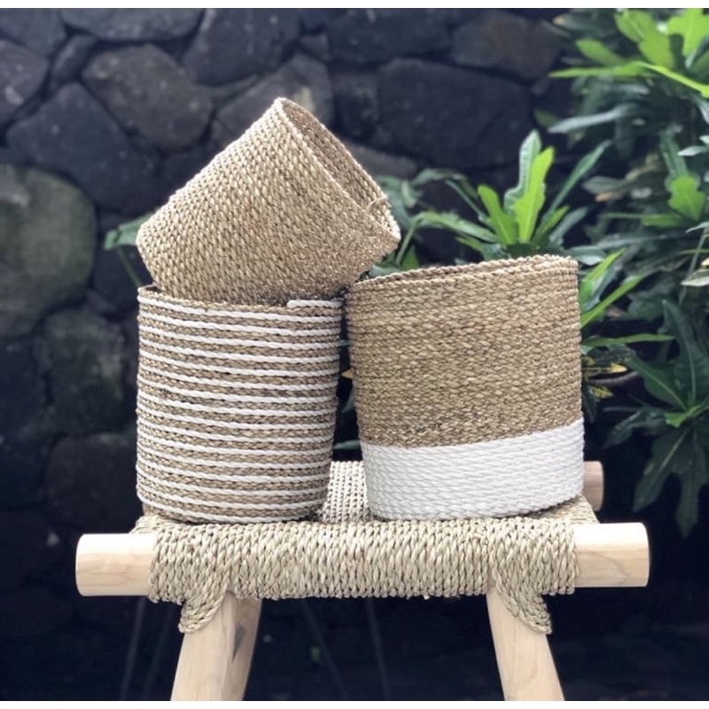 LOLLY 6- Keranjang Cover Pot Anyaman Seagrass Pandan Laut / Vas Bunga Mendong / Wadah Serbaguna / Home Decor / Storage Box Multifungsi / Tempat Makeup / Wadah Bumbu