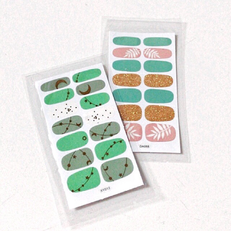 nail sticker set glitter star tosca mint soft baby pink blue gold korea