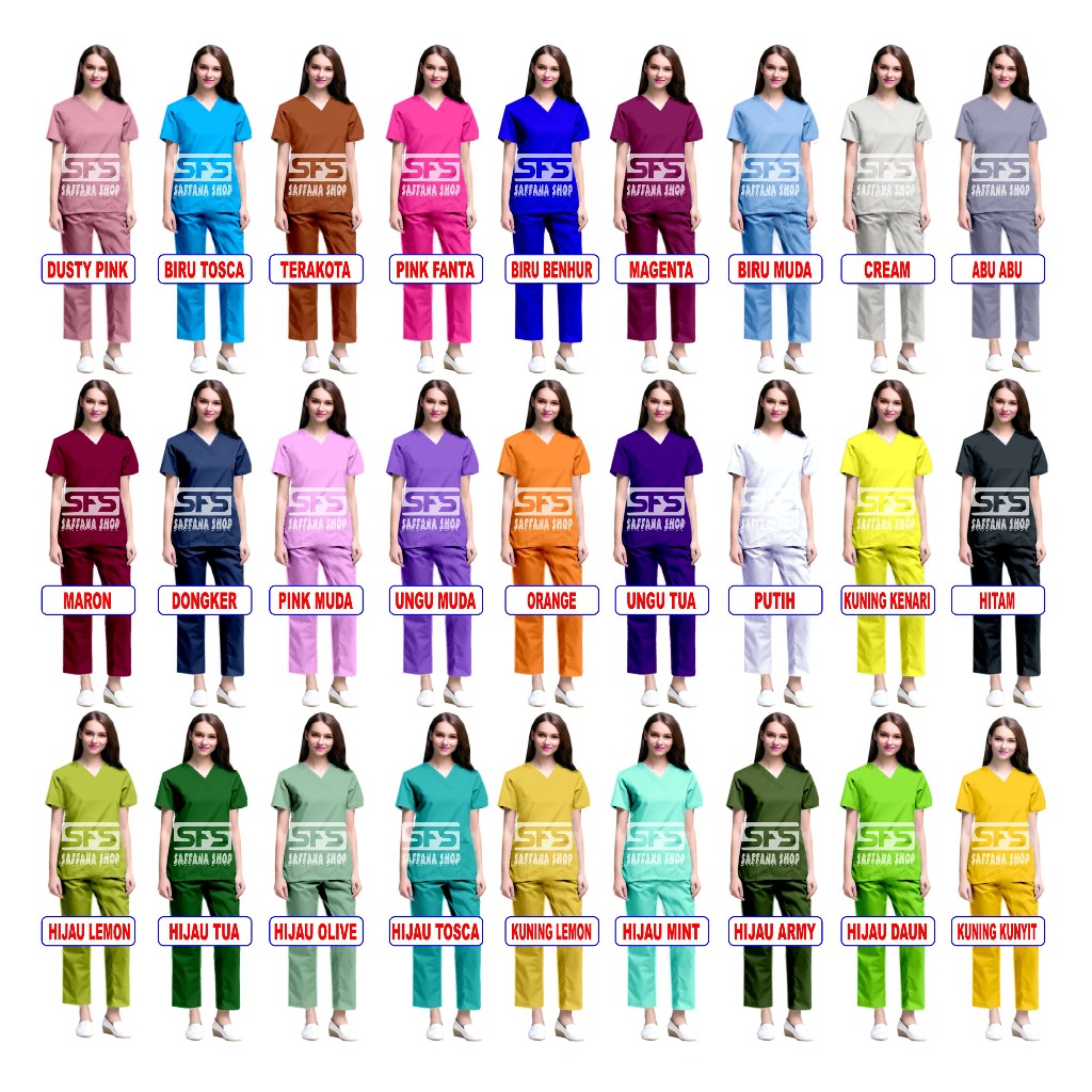 Baju Ok Oka Hijau Tosca Dokter Stelan Scrub Perawat Dokter Medis Nakes Jaga Lengan Pendek