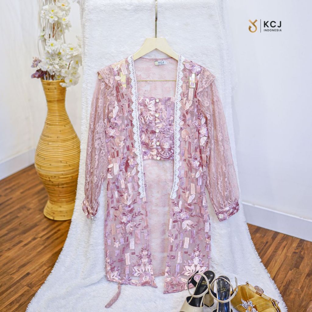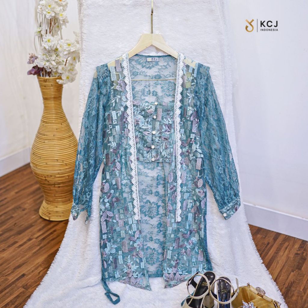 KCJ - Mentari Kebaya Kutubaru Modern Brukat Santili Kombinasi Tile Motif