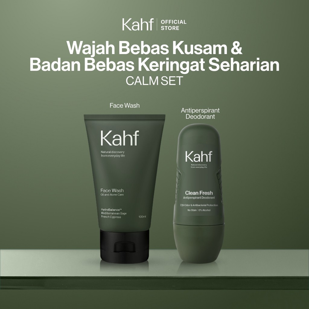 [KAHF BUNDLE 2IN1 PAKET PERAWATAN DAILY USE ESSENTIALS : WAJAH BEBAS KUSAM & BADAN BEBAS KERINGAT SEHARIAN] Paket Personal Care (Face Wash + Deodorant) - Suitable for Daily Use
