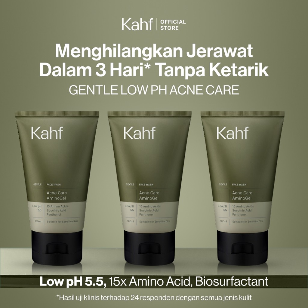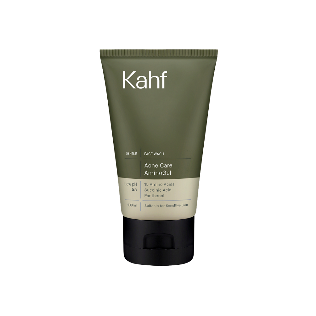 [NEW! BEBAS JERAWAT TANPA RASA KETARIK] Kahf Acne Care Amino Gel Face Wash 100 ml – Sabun Cuci Muka Pria Kulit Sensitif & Berjerawat dengan Hypochlorous Acid, Panthenol, Succinic Acid, Glycerin – Gentle Cleanser Low pH untuk Daily Use