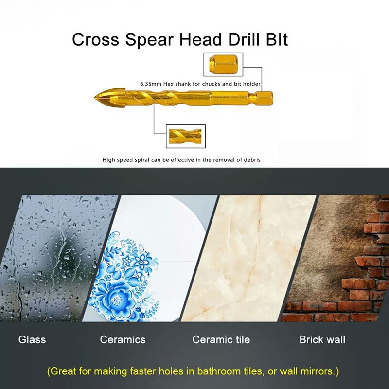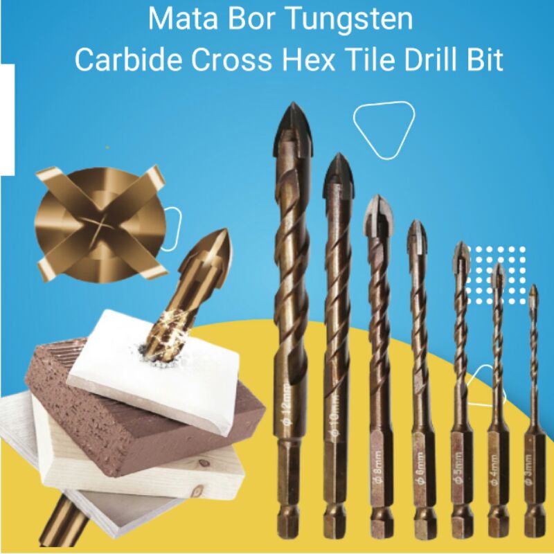 Mata Bor Kaca Keramik Granit Beton Tungsten Carbide Cross Hex Tile Drill Bit