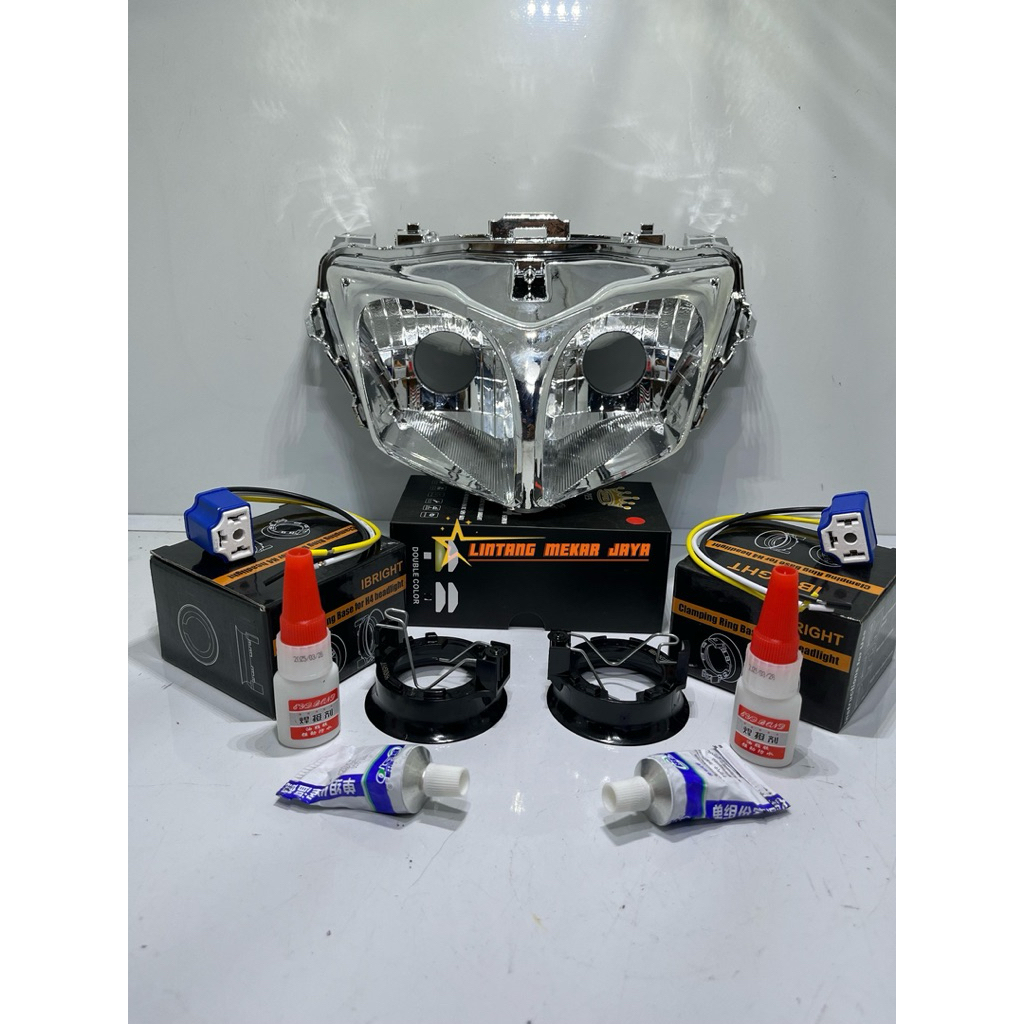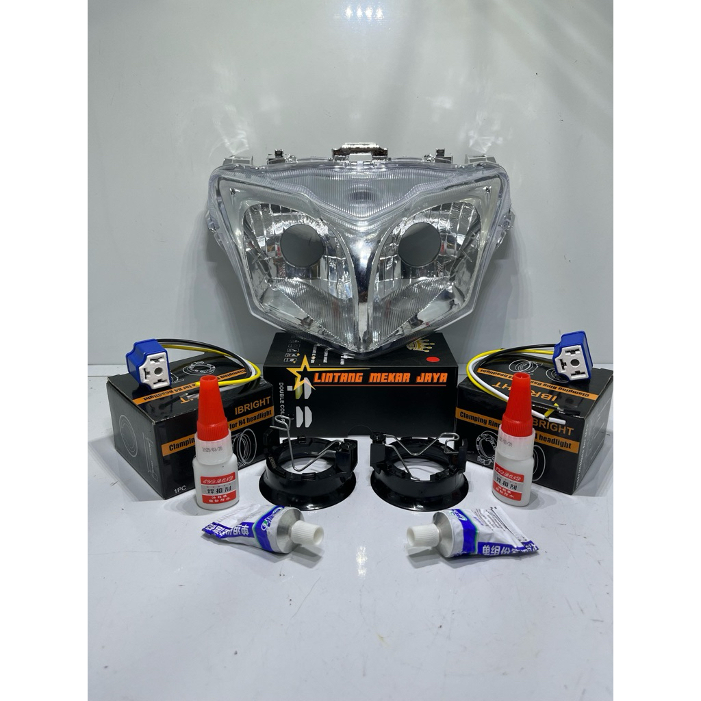 Reflektor lampu h4 lengkap fiting somket H4 SUPRA X 125 HELM IN 2011-2013