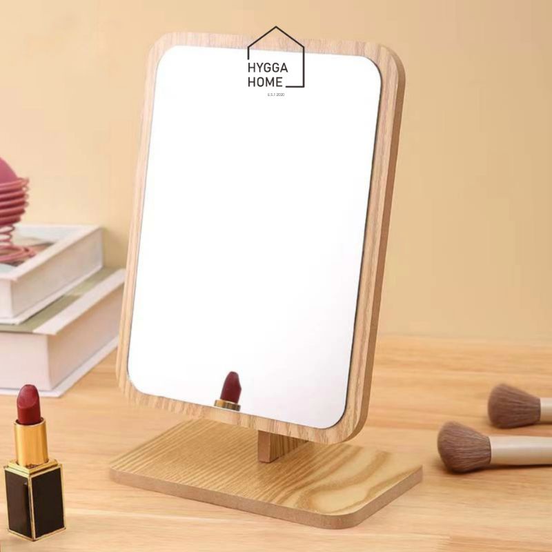Hygga Home KAITO Cermin Meja Estetik/ Cermin Rias Kayu/ Make up Wooden Table Mirror