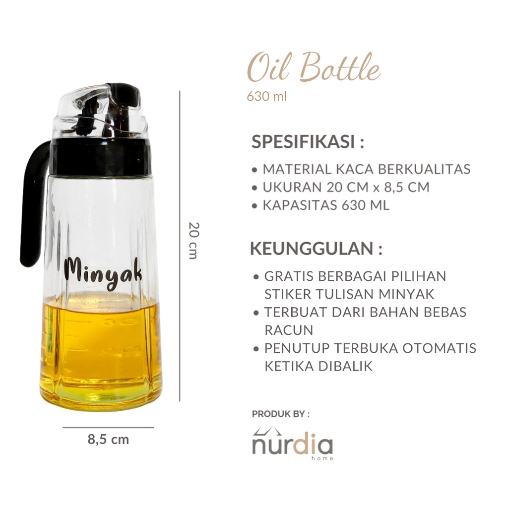 Botol Minyak Kaca 630 ml (Oil Bottle Premium) Tempat Minyak / Wadah Minyak / Botol Kaca Serbaguna By Nurdia Home - B02