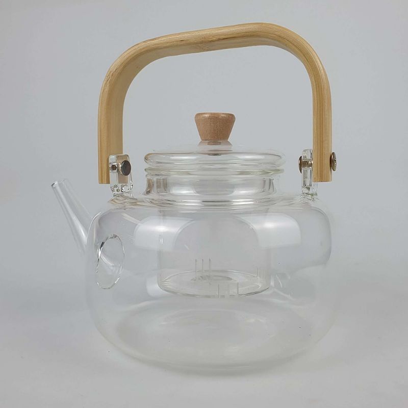 Pitcher Teko kaca tahan panas gagang kayu glass teapot japanese style / teko teh penyaring kaca
