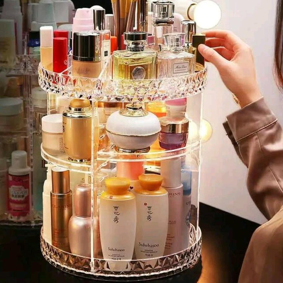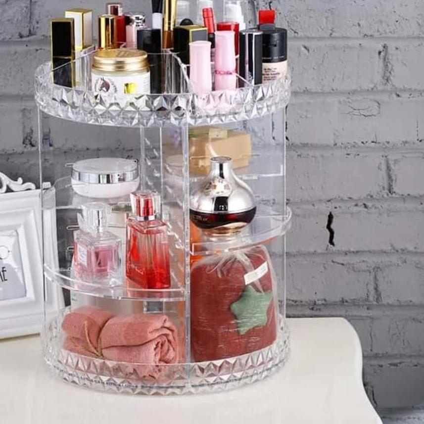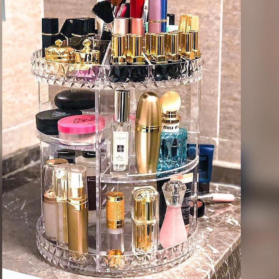 ♚ Rak Kosmetik Putar 360 Derajat Diamond Acrylic Make Up serbaguna kuas kutek lipstik ♛