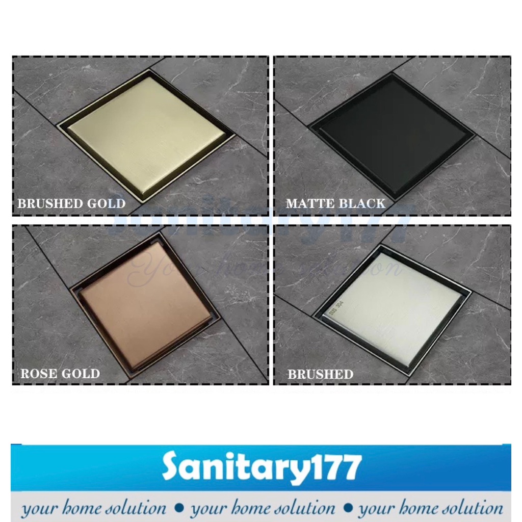 Saringan got stainless 304 gold rosegold 10x10 cm- smart drain insert tile floor drain isi keramik anti kecoa anti bau hitam black stainless