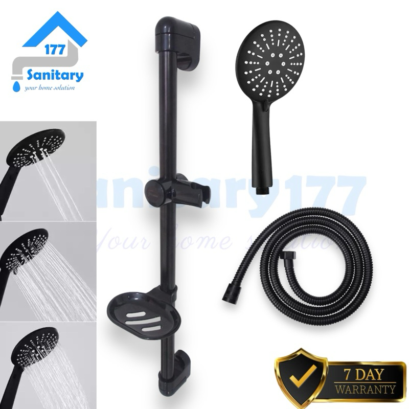 Shower Tiang Gede Hitam T339-Tiang Shower Mandi Handshower 12cm black jumbo semprotan 3in1 minimalis bathroom /L40-S8A