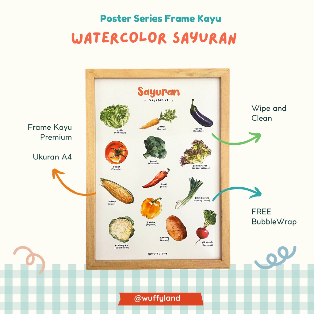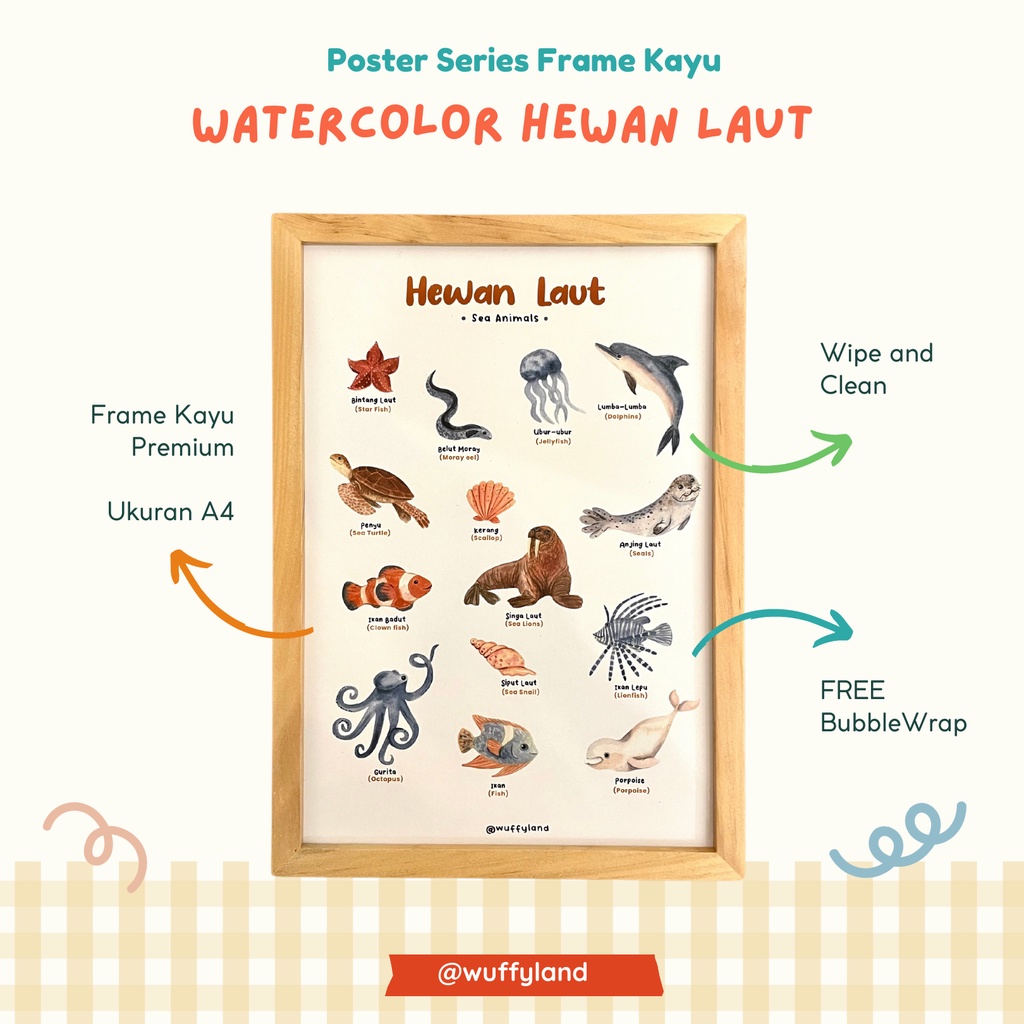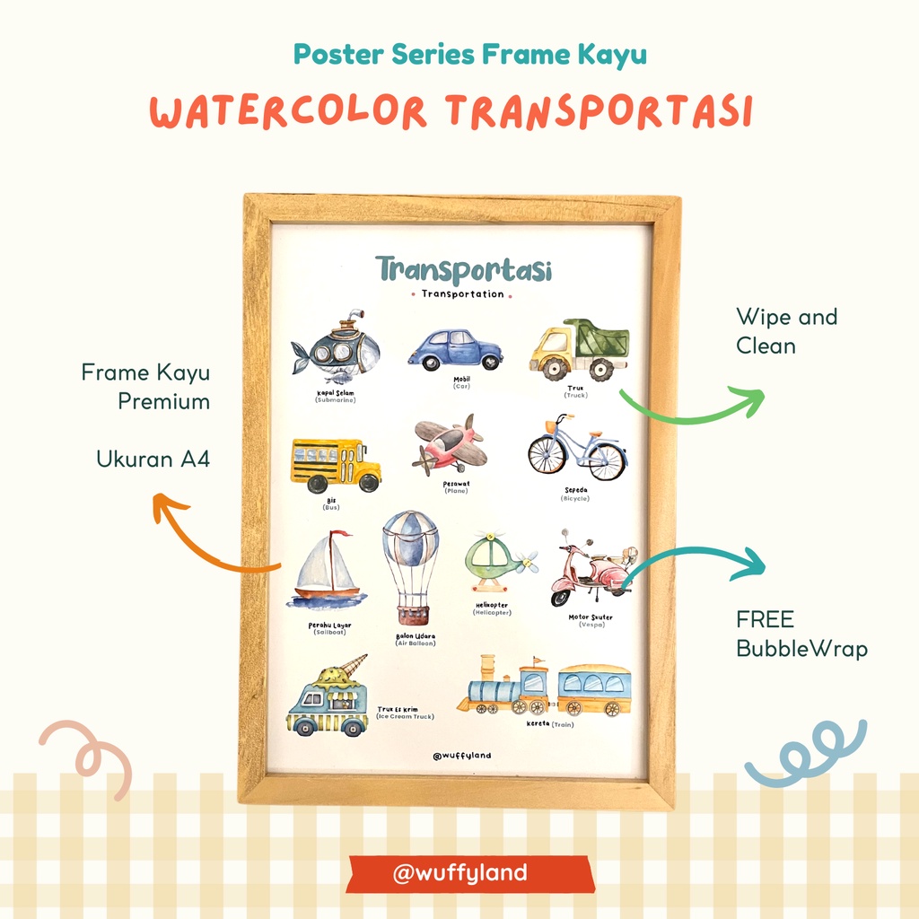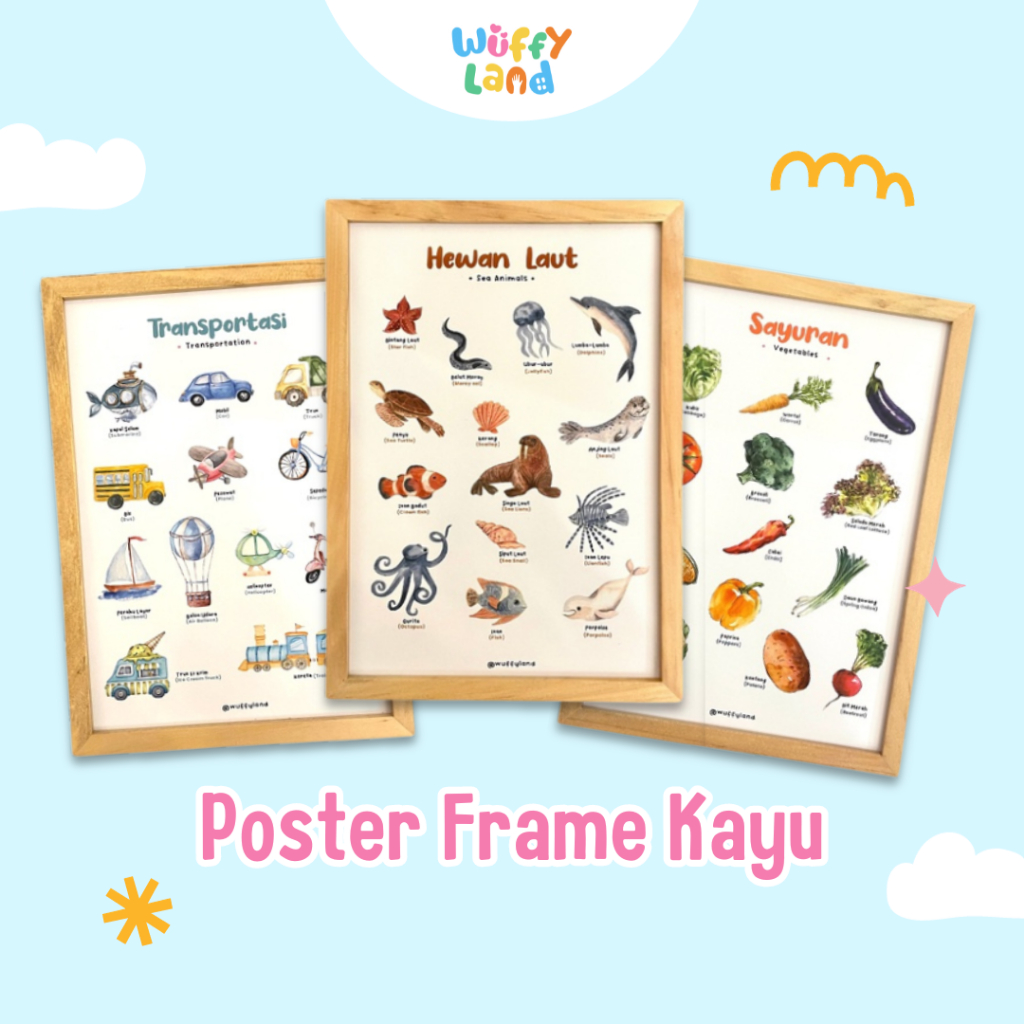WUFFYLAND Poster Water Color Style Aneka Tema, Ukuran A4, Dekorasi Hiasan Aestetik Untuk Kamar Anak TK Paud SD