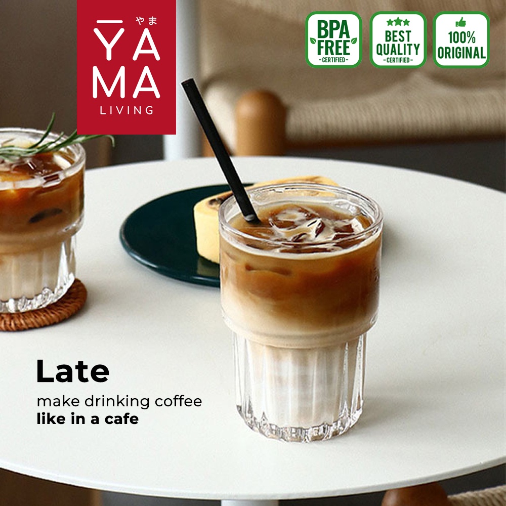 YAMA LATE Gelas Kaca Kopi Borosilikat Tahan Panas Dingin Estetik Cafe Coffee Shop