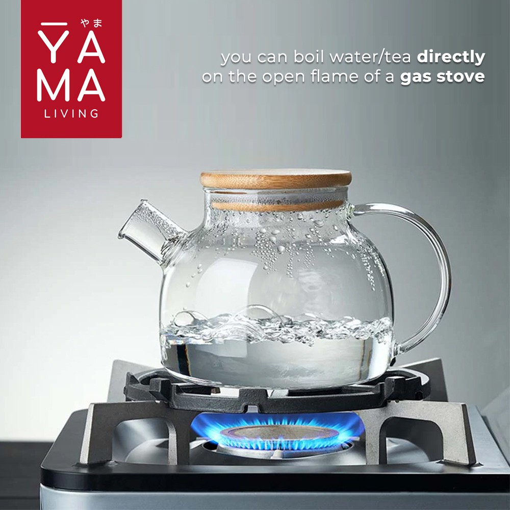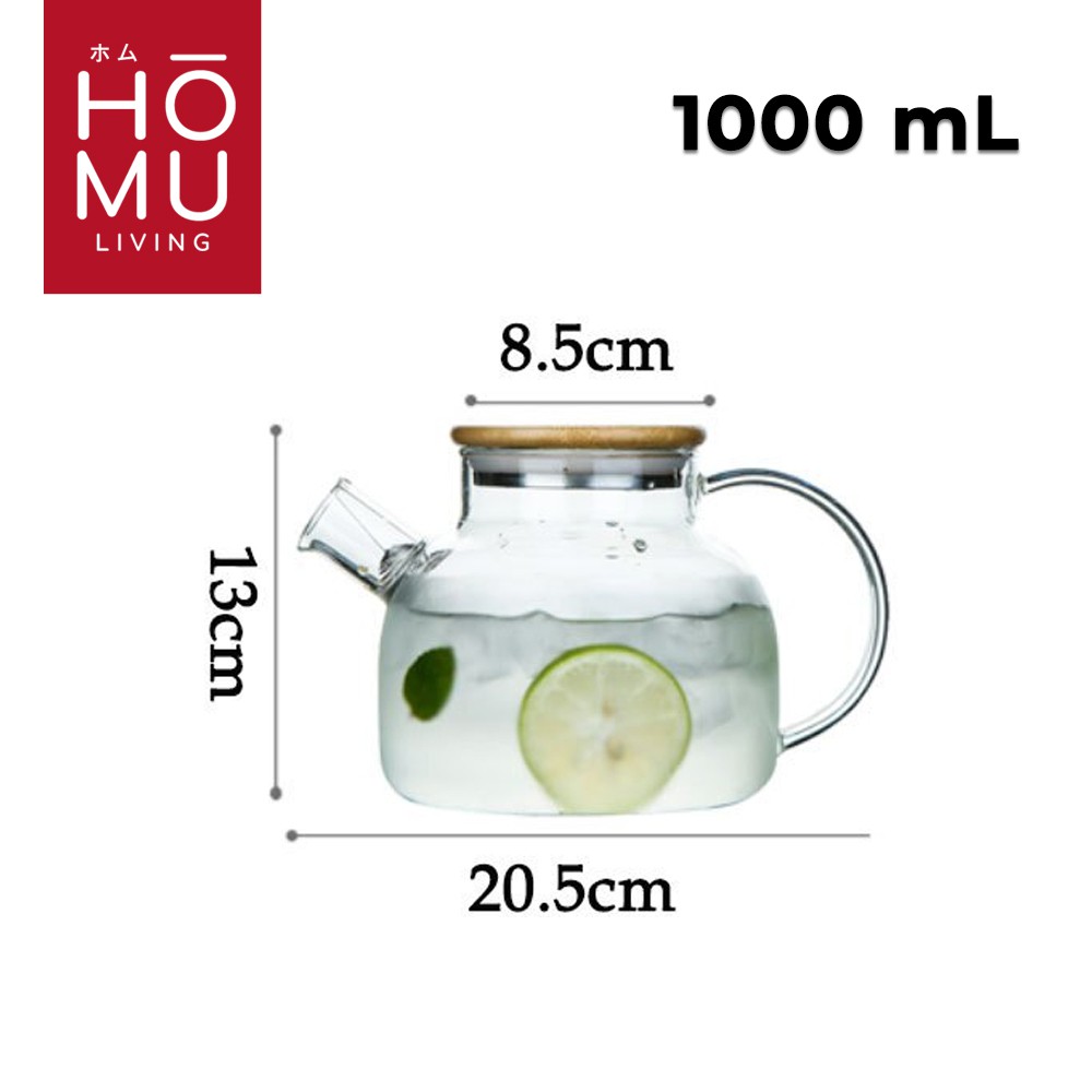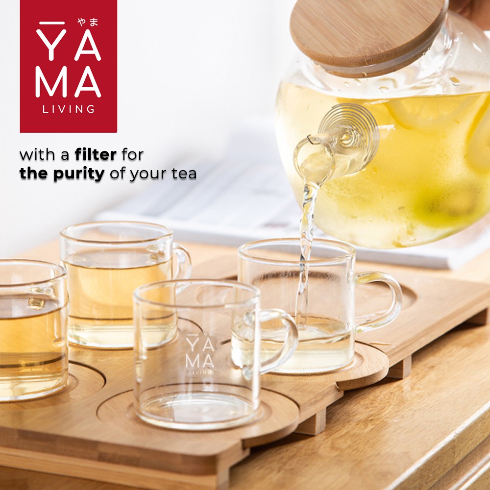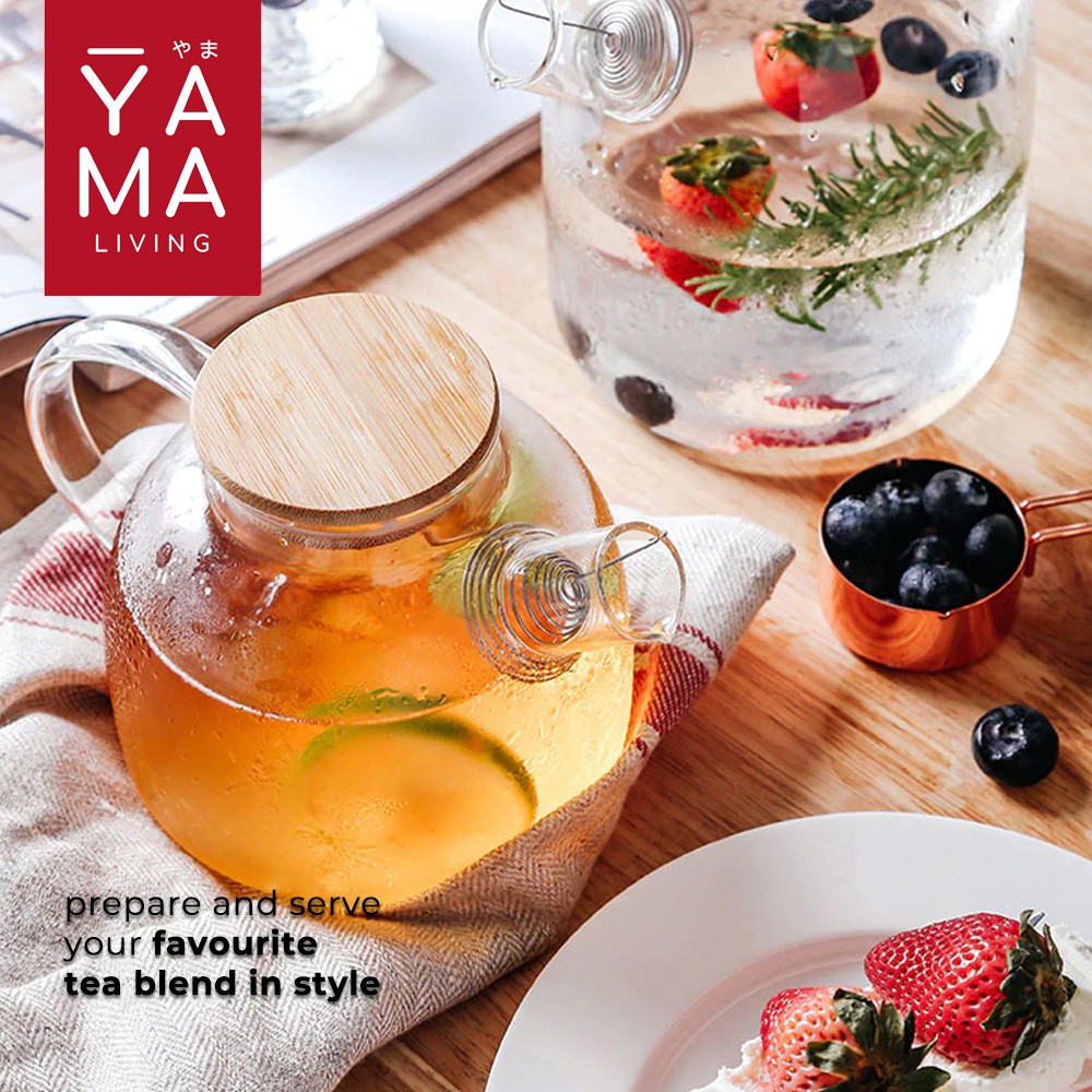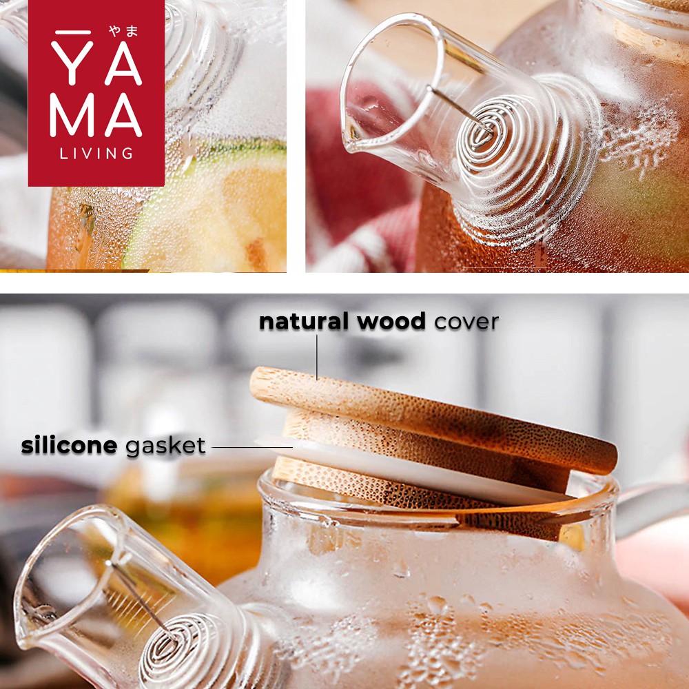 YAMA HAMARI Natural Wood Tea Pot Infuser Teko Teh Kaca Bamboo Teapot Pitcher Teh 1000 ml