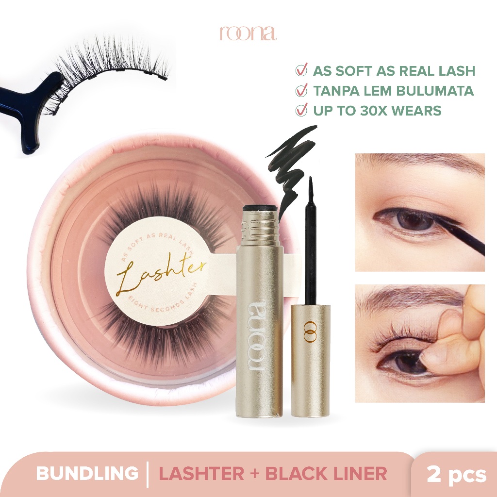 ROONA - Bundling Lashter + Black Eyeliner. Bulu Mata Magnetik Tanpa Lem 30x Pakai. Pasang Bulumata 3D Natural Dengan Magnet
