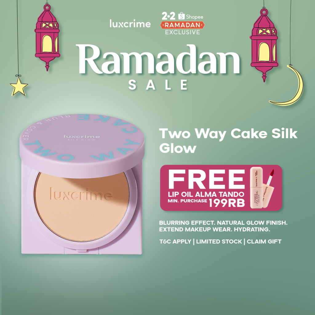 NEW Silk Glow Luxcrime Blur & Cover Two Way Cake - Bedak Foundation Padat High Coverage Untuk Kulit Halus Tanpa Pori Bebas Minyak Tahan 24 Jam