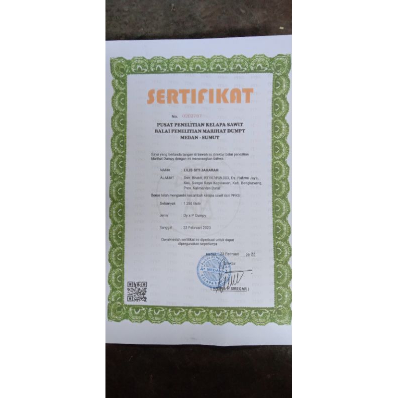 bibit kecambah sawit PPKS Dxp DUMPY MARIHAT
