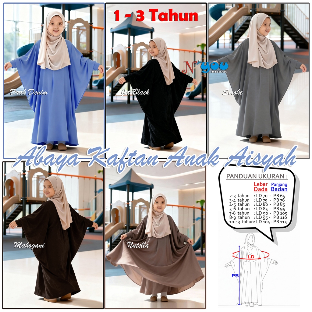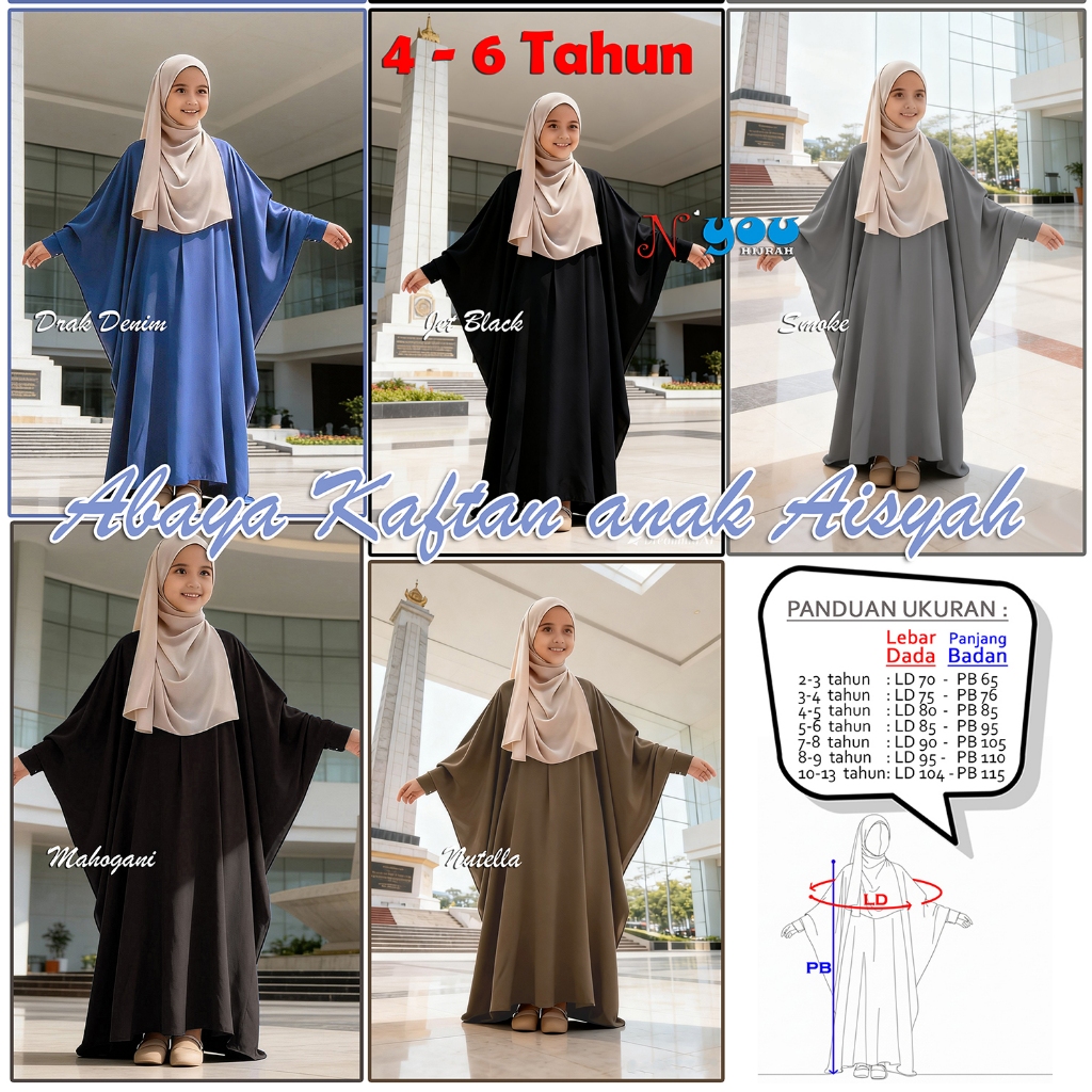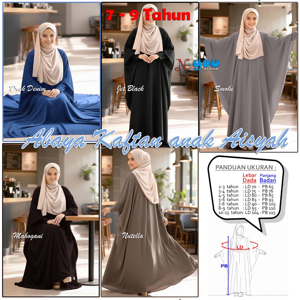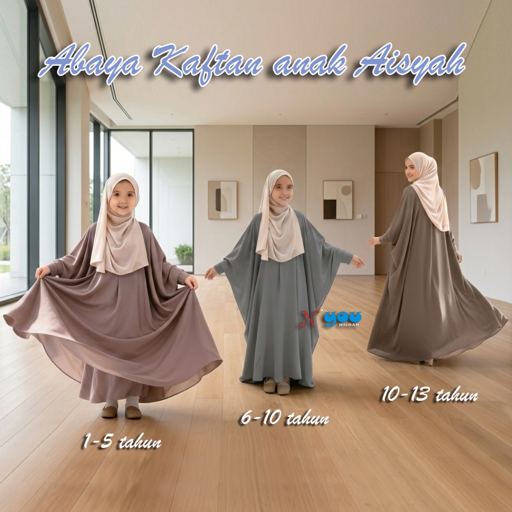 Baju Gamis Anak Polos Elegan MARINA Abaya Kaftan Anak Aisyah Anti UV 25 persen Adem Nyaman Trend 2025 - Nyou hijrah