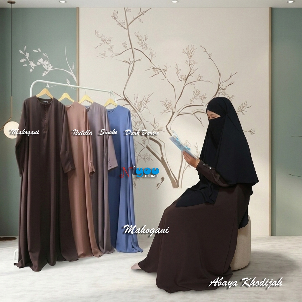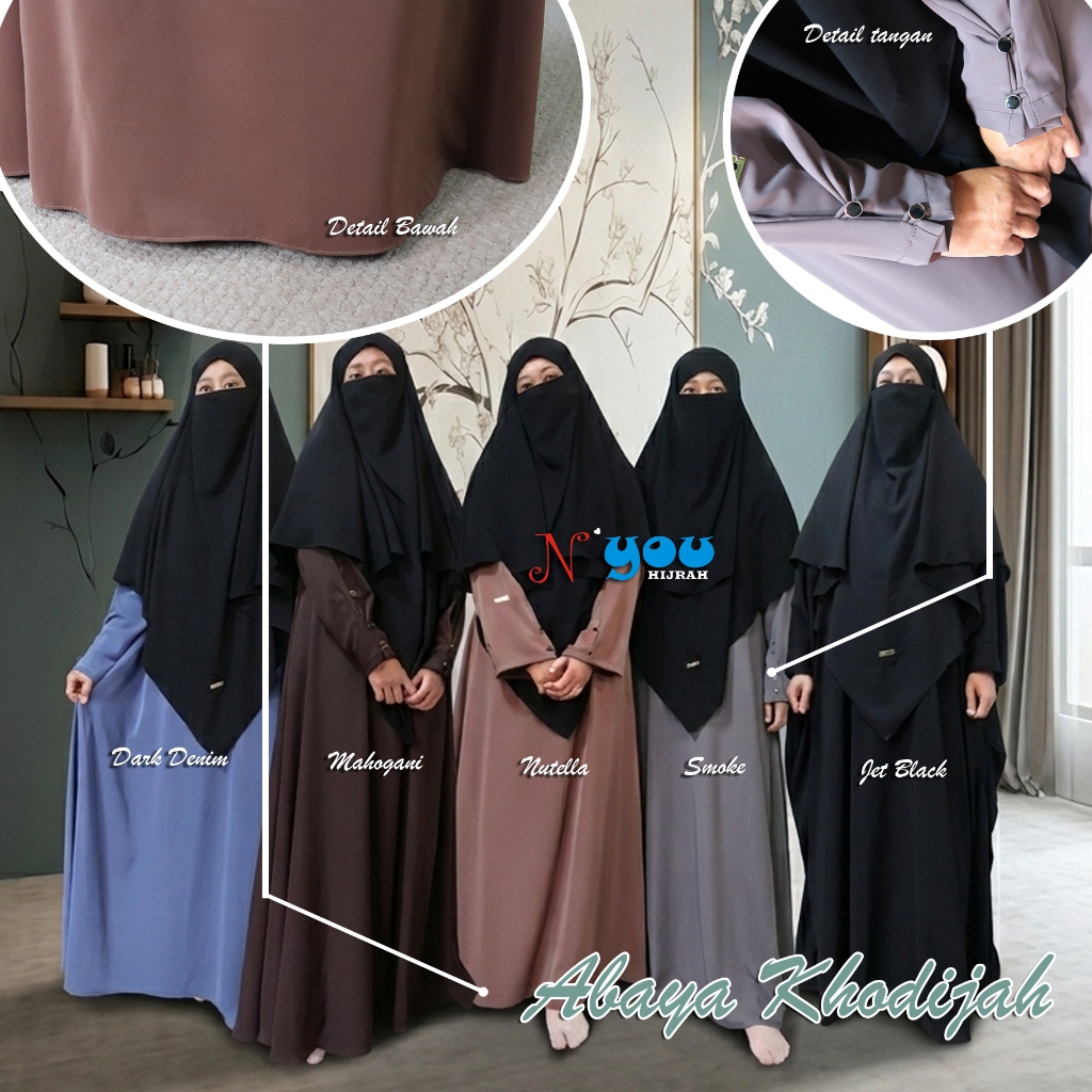 Dress Gamis Wanita Terbaru Modern Hitam Anti UV tinggi 20 persen Bahan MARINA Abaya KHODIJAH by Nyou Hijrah Jatuh Lembut Nyaman Dipakai Sehari-hari