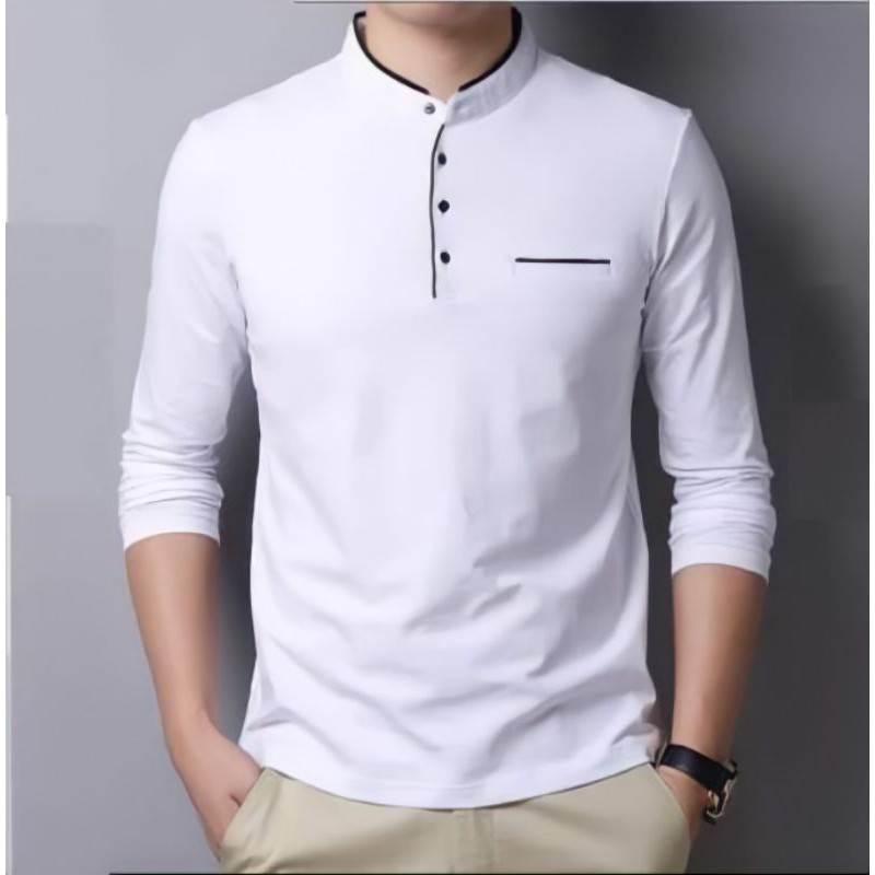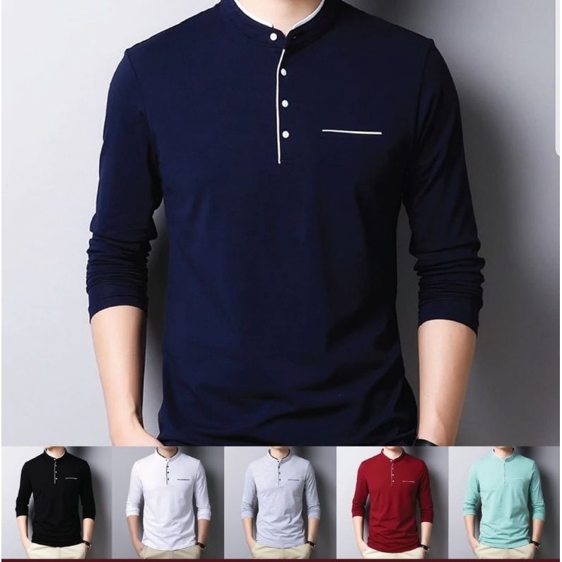 kaos lengan panjang pria poloshirt polos kerah sanghai