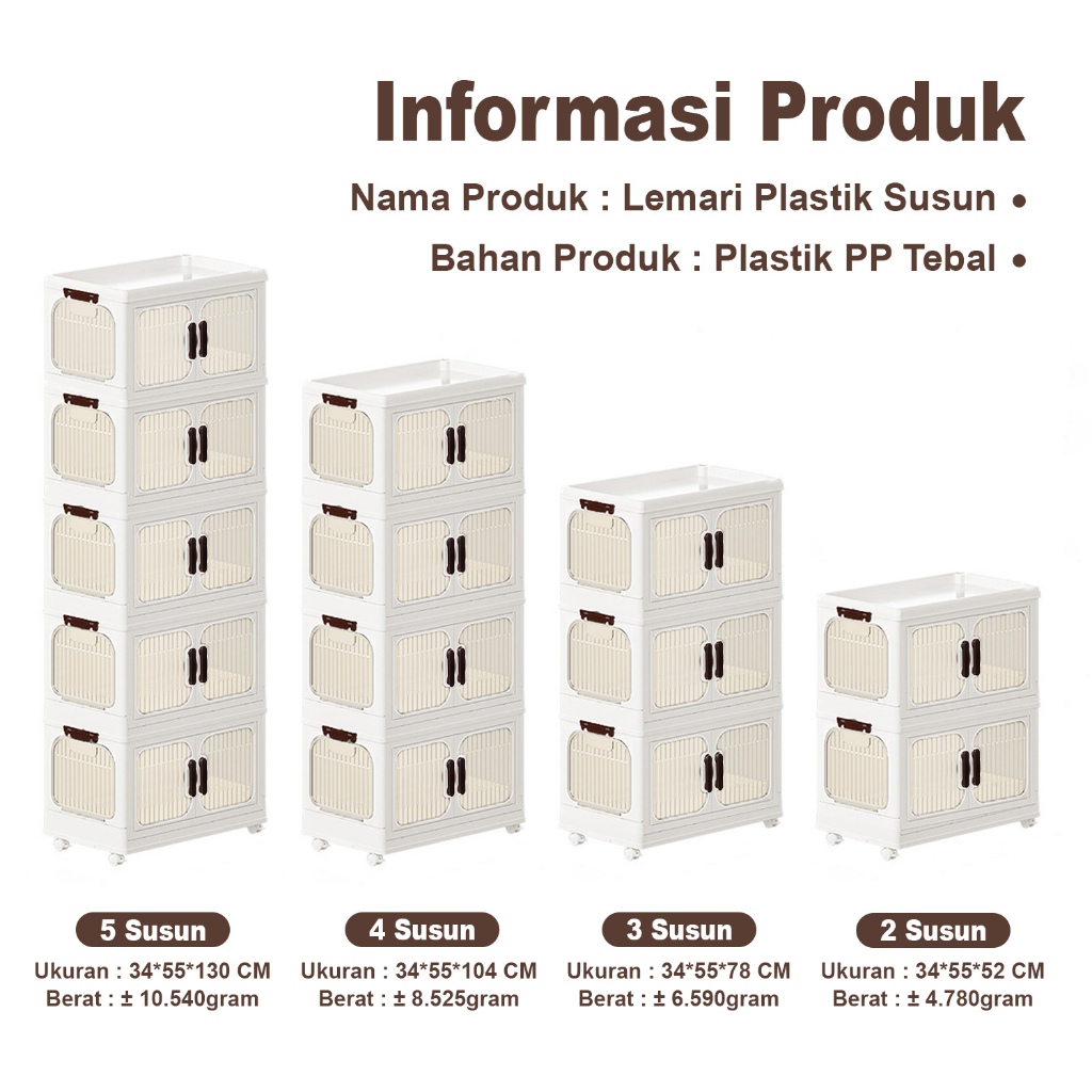 BARITOINDO Lemari Susun Roda Pakaian Anak Plastik Tebal Anti Jamur Anti Rayap - H02/H03/H04/H05