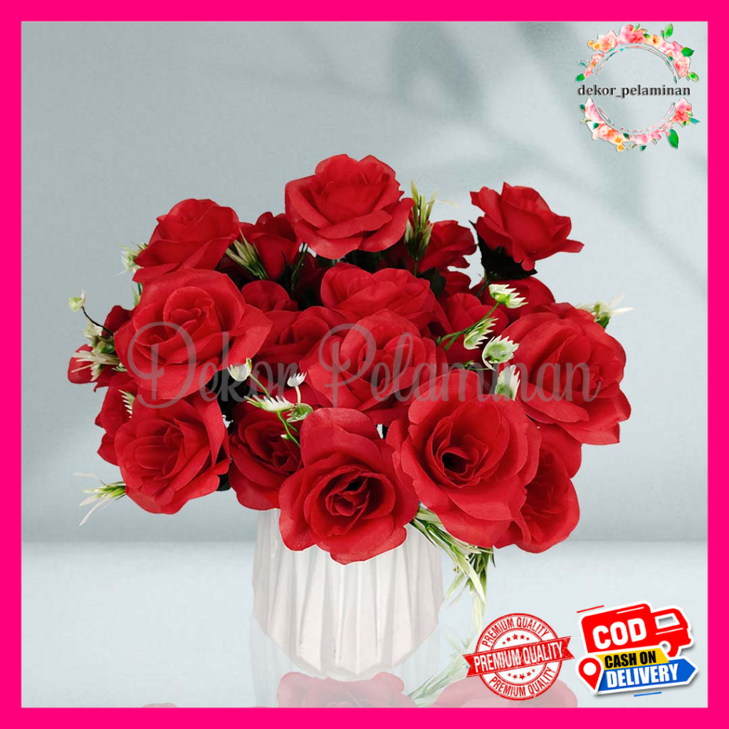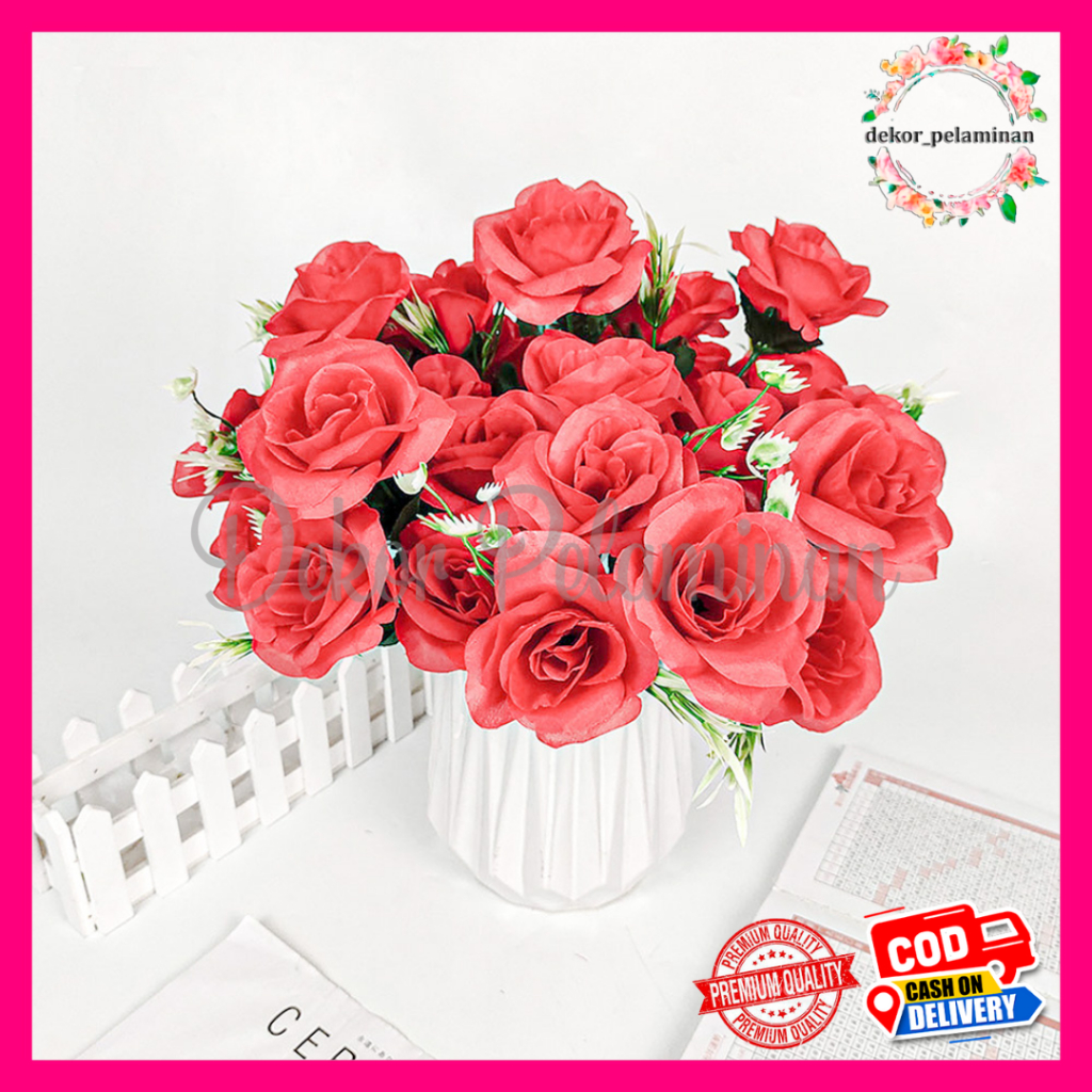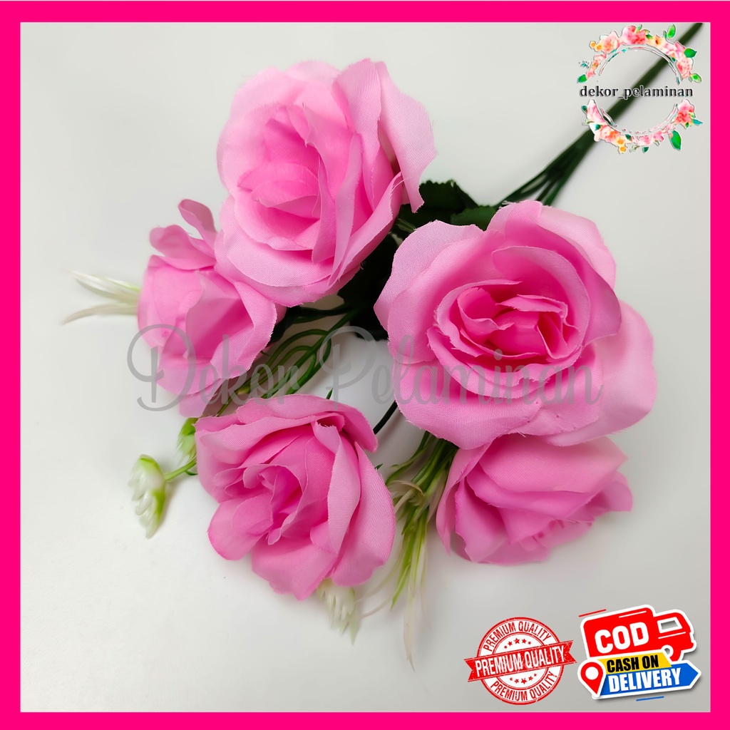 COD BUNGA ROSE MAWAR PLASTIK TANGKAI 5 MURAH ARTIFICIAL - ROSE JEPANG DEKORASI
