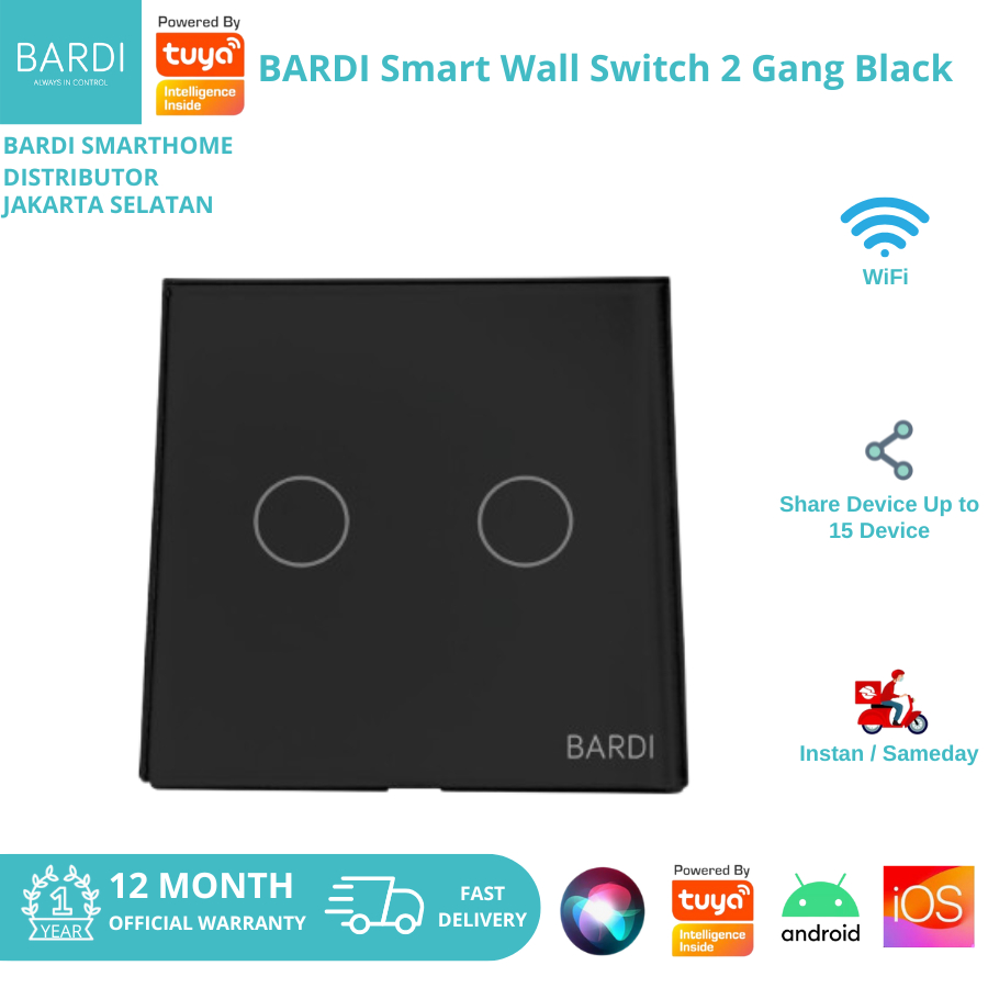 Bardi Smart Wifi Touch Wallswitch - EU 2 Gang (Black)