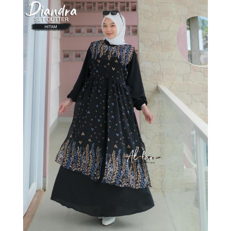 Gamis Dress Rompi Terpisah Diandra Set inner Outer set Rompi cringkel Etnik Premium 2 in1