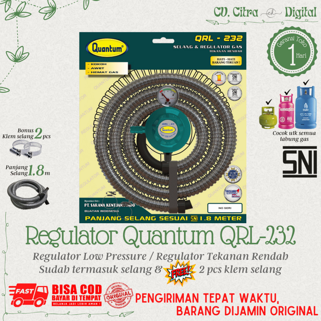Regulator Quantum Paket Selang tipe QRL-032 / QRL-042PLUS / QRL-142 Plus Regulator Gas