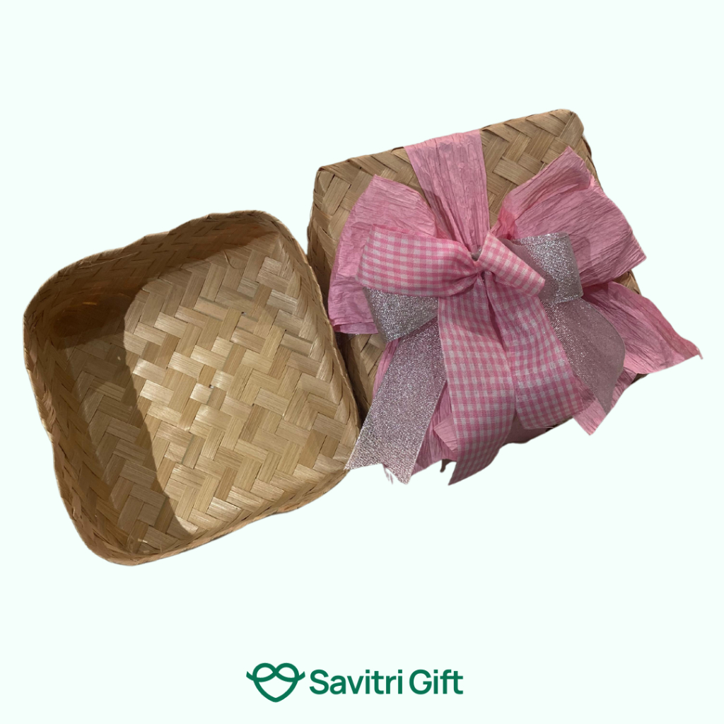 Savitri Gift - Besek Bambu Hias Premium - Pembungkus Kado Makanan Serbaguna 18x18cm