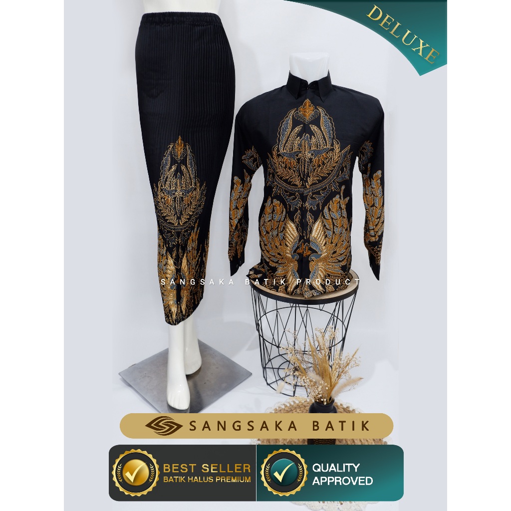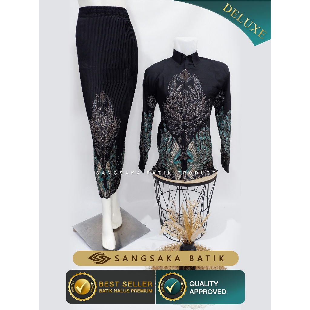 Sangsaka Batik - Baju Batik Couple Lapis Furing Set Rok Plisket Untuk Acara Formal Keluarga Wisuda Lamaran Pernikahan