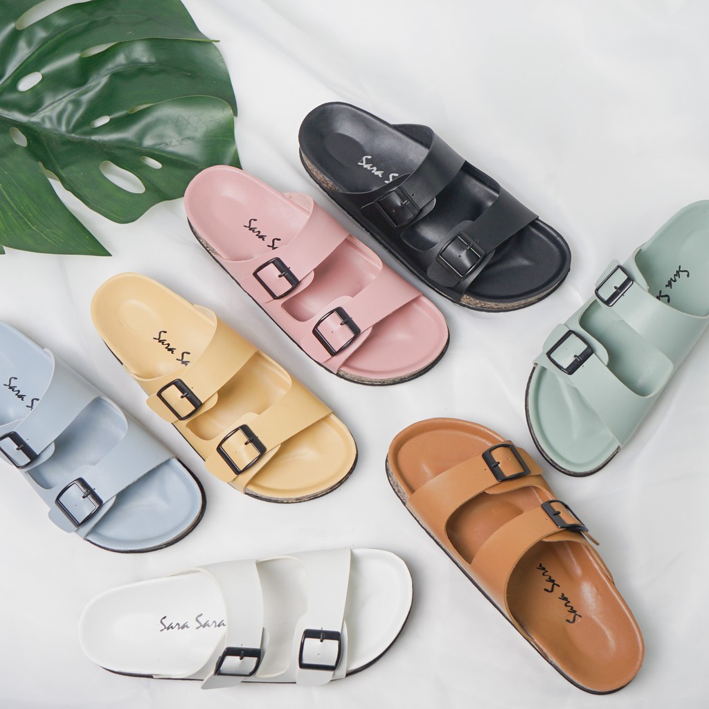 Sara Sara JINNY Sandal Slide Casual Birken Adjustable Gesper Buckle Empuk Ringan Wanita Sarasara
