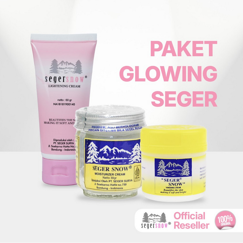 Seger Snow PAKET GLOWING 3 PCS Lightening Moisturizer Vanishing Cream | Paket Set Perawatan Wajah Andalan