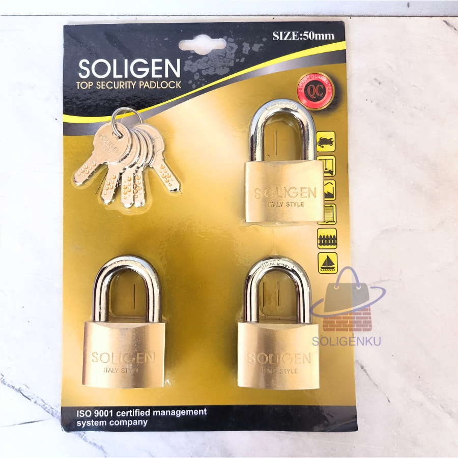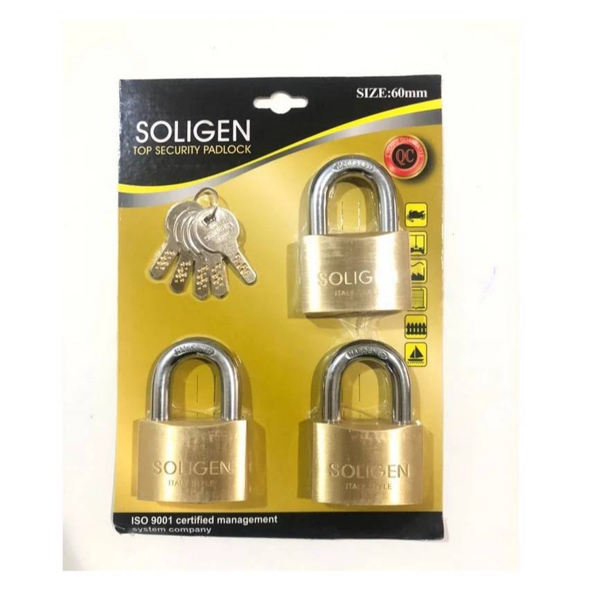 Gembok Soligen Komputer Keyless Kuningan Leher Pendek 3 pcs 50mm ; 60mm Gembok Anti Maling master key | Gembok Master Keyless 50mm x 3 ; 60mm x 3 Anti Maling