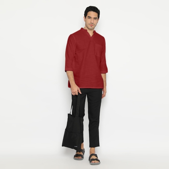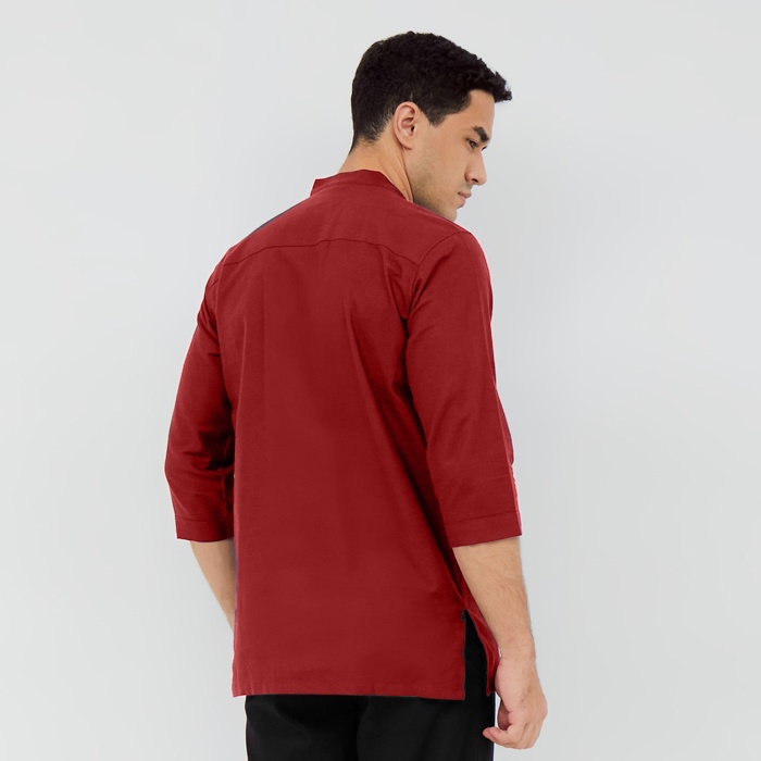 MAZLEM Xavier Maroon - Baju Koko Pria Legan 3/4 Bahan Linen
