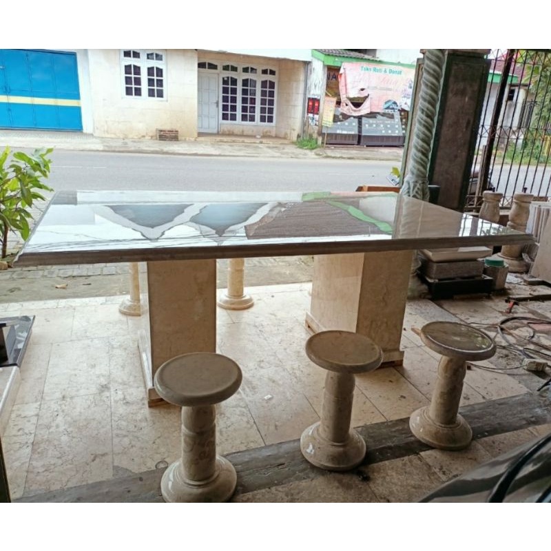 Meja Makan Marmer Tulungagung Model 2 Kaki
