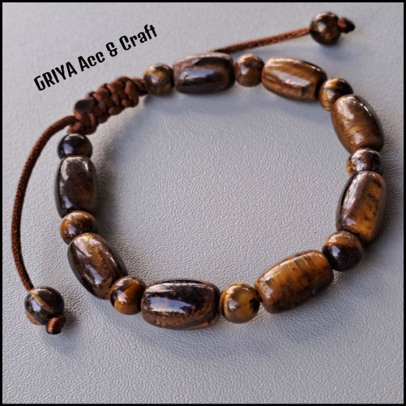 Gelang Batu Alam Tiger Biduri Sepah Tabung Model Tali Serut Aksesoris Fashion Pria Dan Wanita