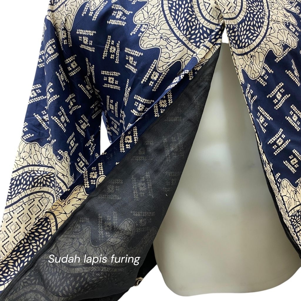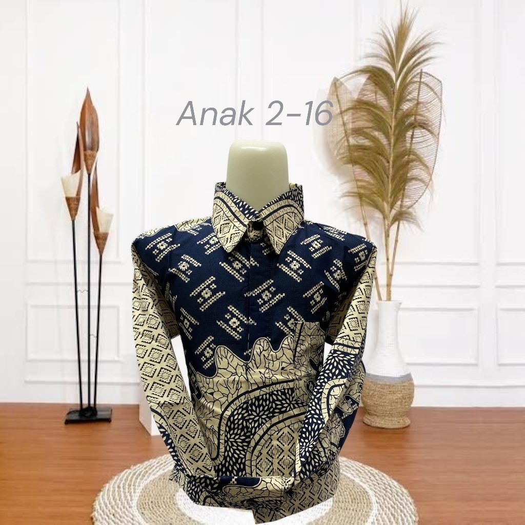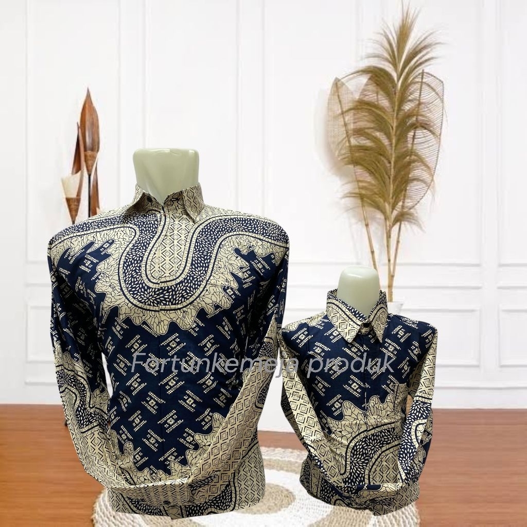 48 Batik couple ayah anak dongker mix crame-Seragam batik couple ayah anak lengan panjang lapis furing
