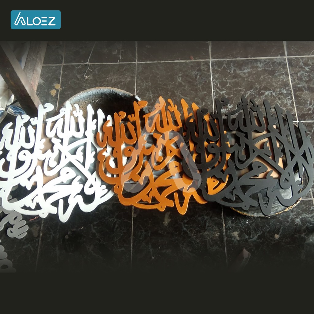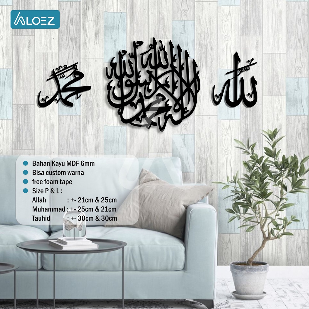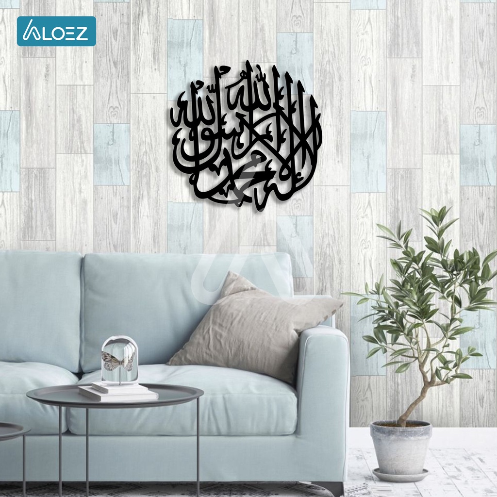 ALOEZ Hiasan Dinding Dekorasi Dinding Walldecor Dekorasi Rumah Pajangan Ukiran Tempel Murah Kaligrafi Tauhid Syahadat lailahaillallah Bulat Motif Lafadz Allah Muhammad AZ-UT001