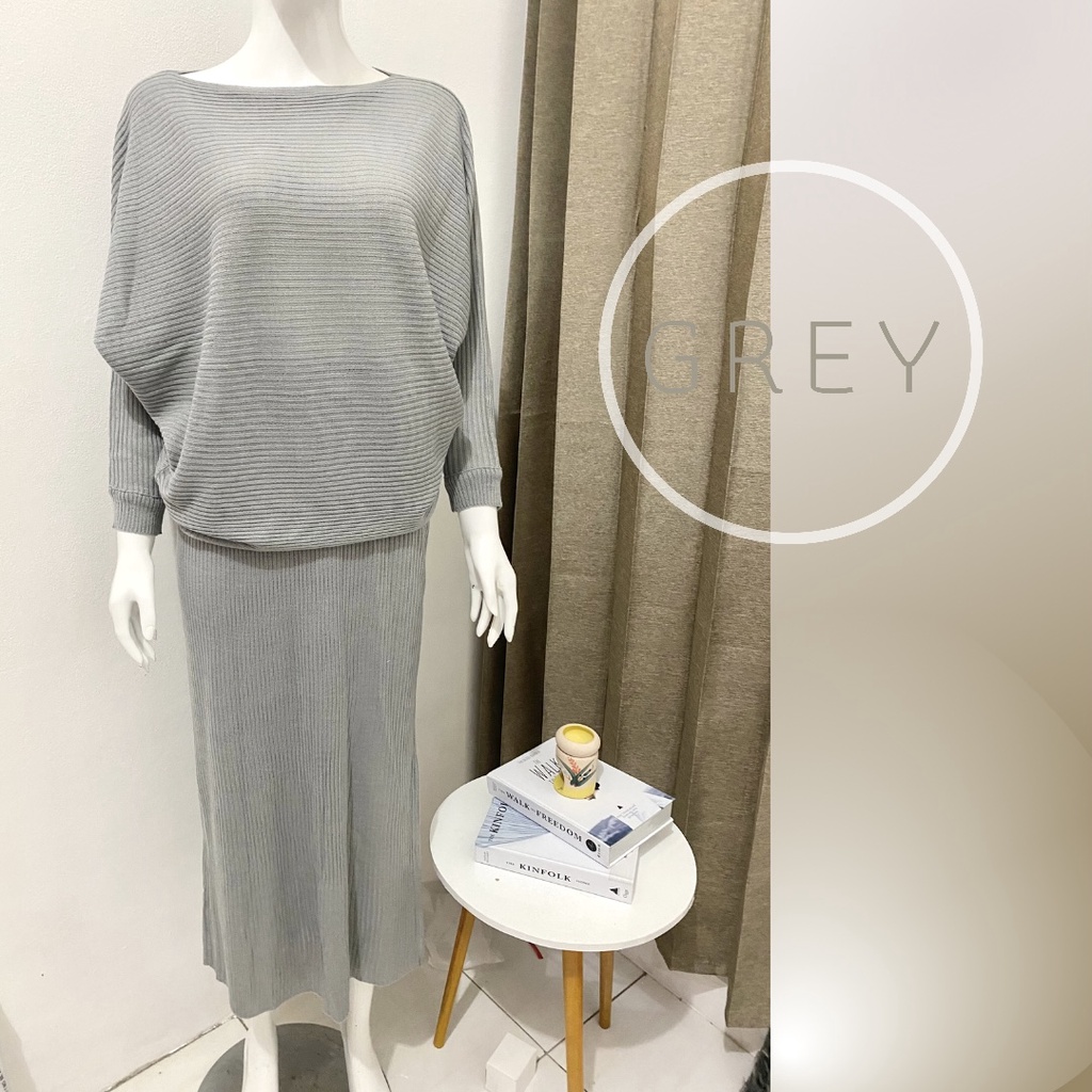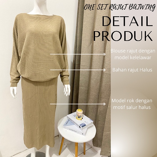 SETELAN RAJUT / ONE SET RAJUT / BLOUSE BAJU RAJUT BATWING / ROK SPAN RAJUT