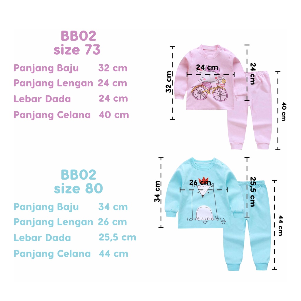 HaiWai COD (1) Baju Piyama Anak Lengan Panjang / Baju Anak Santai Motif Karakter / Baju Bayi ( Produk Import ) BB02