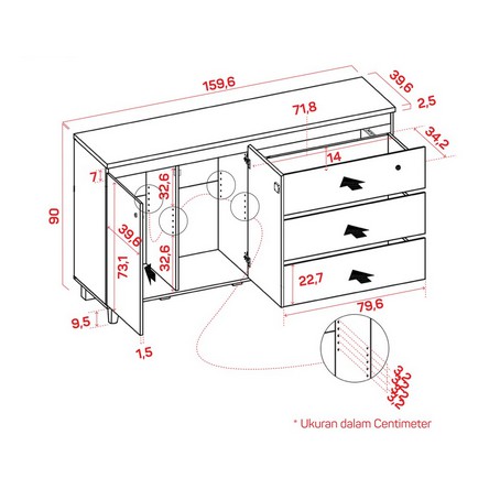 Bufet Oslo SB160 scandinavian buffet bupet multifungsi kabinet serbaguna kayu minimalis mewah