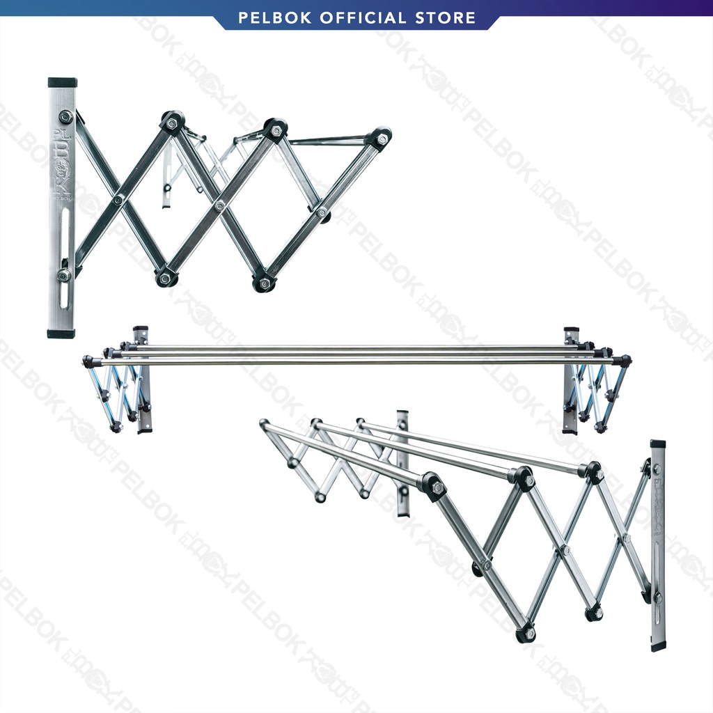 PELBOK Jemuran Baju Dinding Lipat 100 cm 3 Galang Stainless Anti Karat PLBOK
