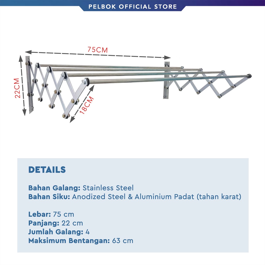 PELBOK Jemuran Handuk Dinding Lipat 75 cm Stainless Anti Karat PLBOK