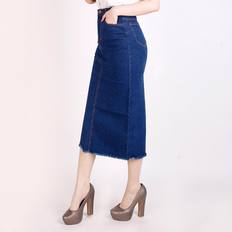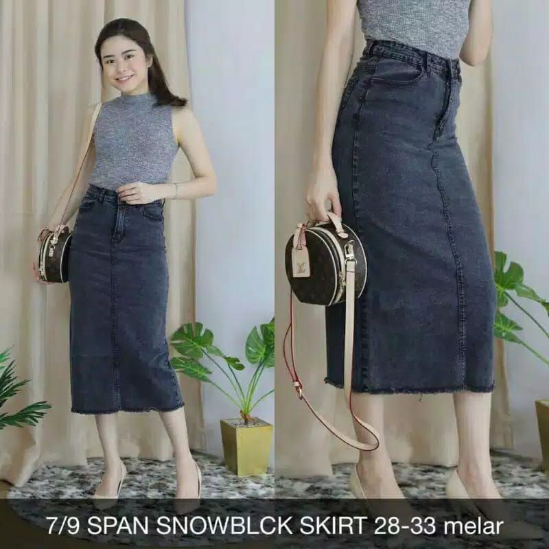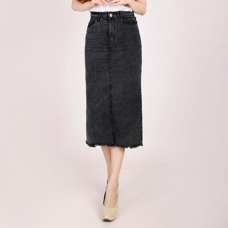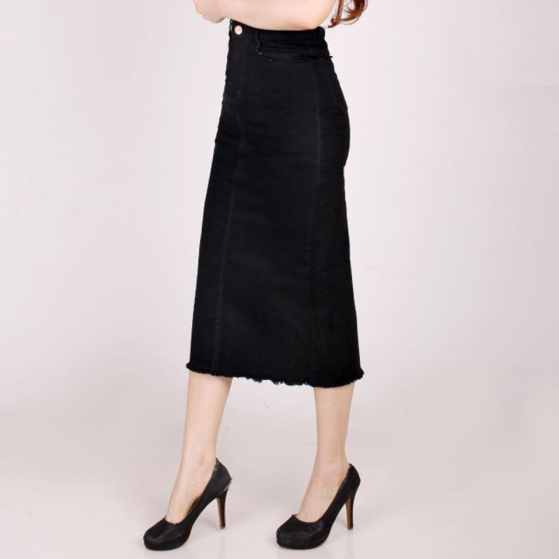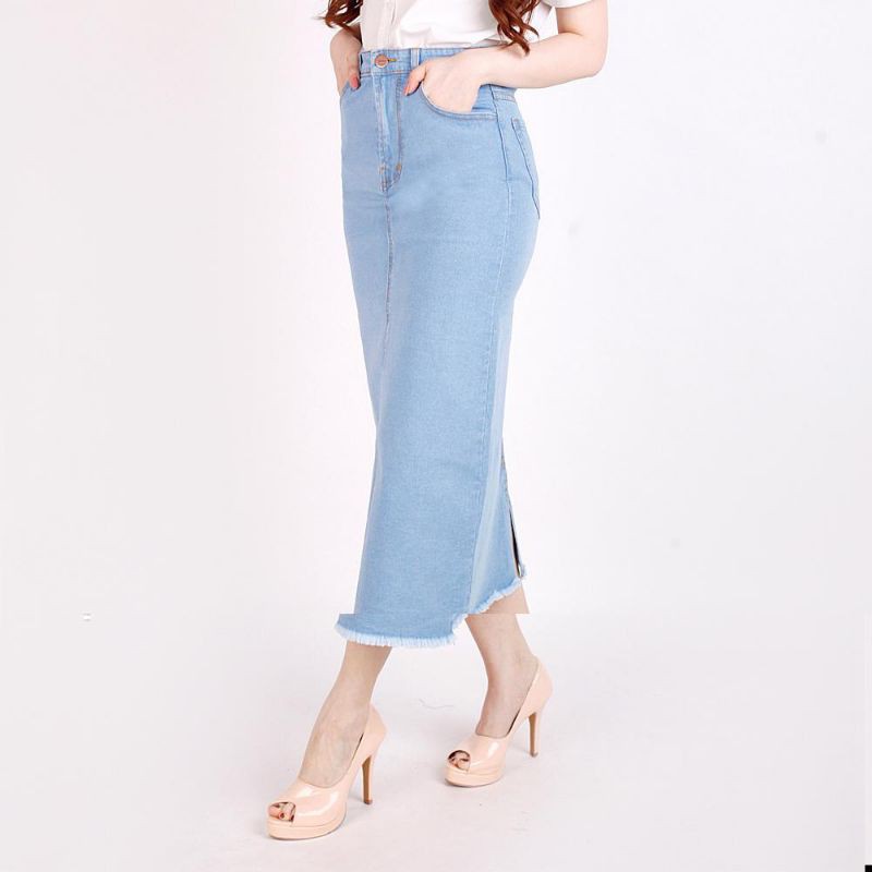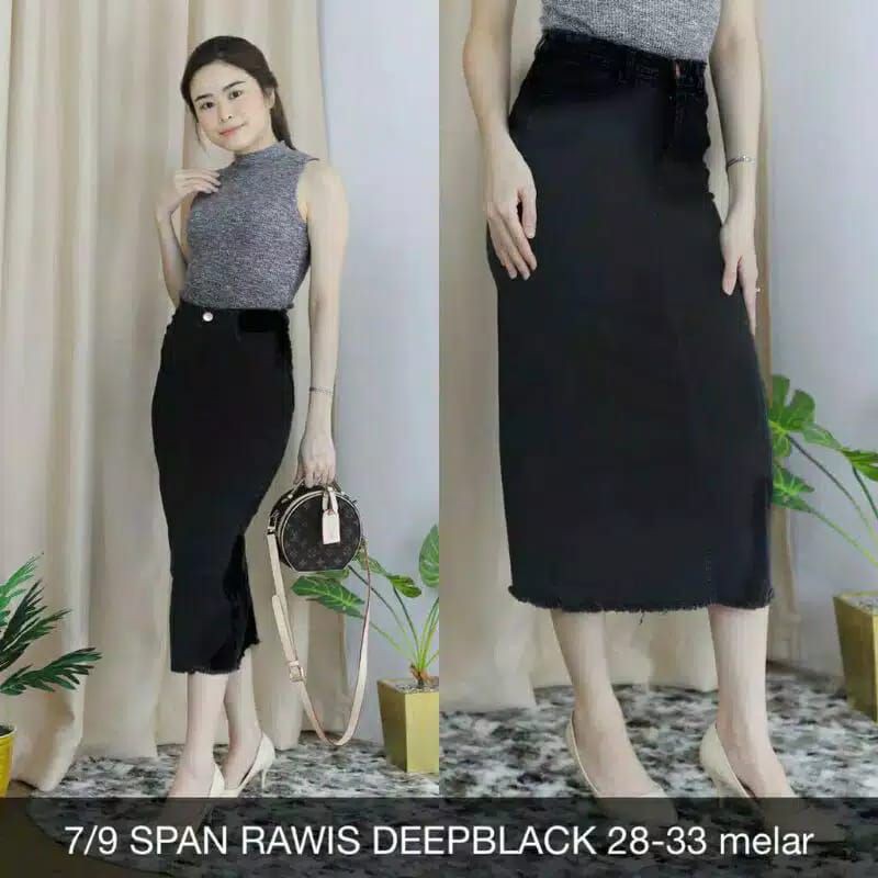 (Bisa COD) Rok Span Rawis Jeans 7/9 Unfinished Maxi Skirt / Demim Rok Span Rawis Panjang Jeans Wanita