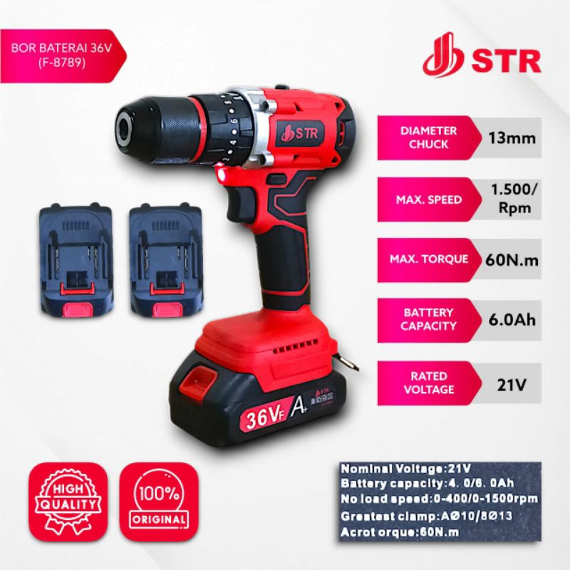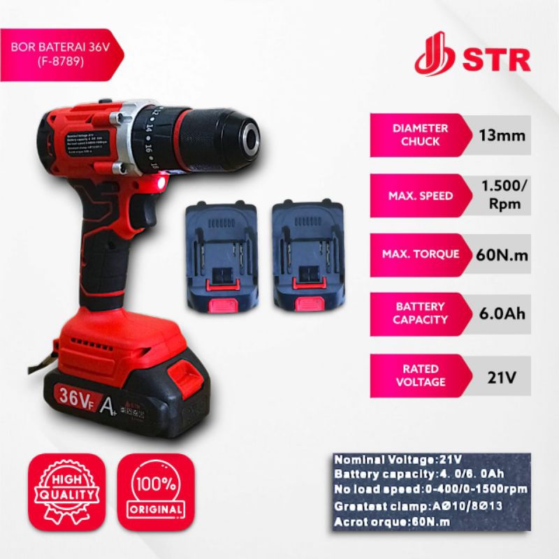NEW!!! STR JIEBANG Mesin Bor Baterai Cordless Impact F-8789 21V 13mm Bor Charge Baterai 21V STR JIEBANG F8789 PROFESSIONAL TOOLS