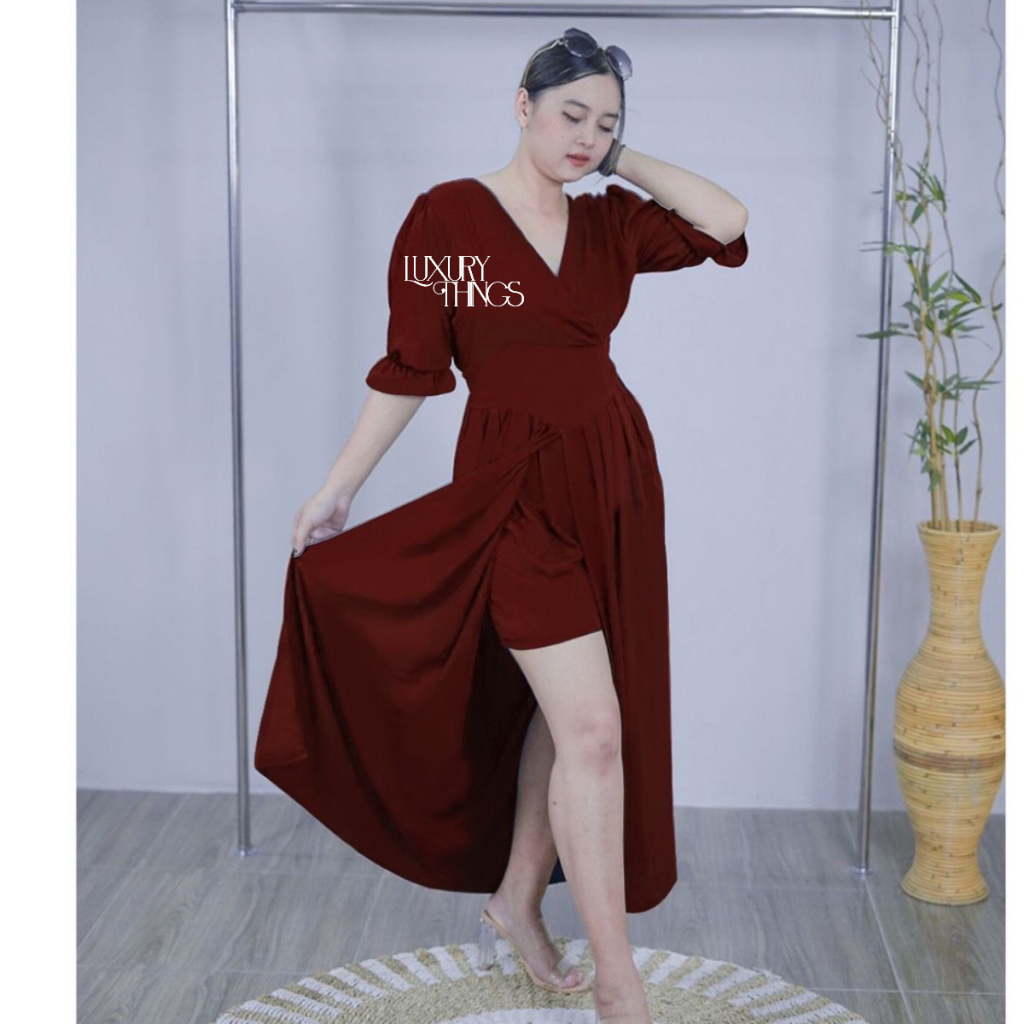 Set Ulva Korean Style Setelan Lengan Pendek Set Pantai Baju Wanita Big Size Setelan Rayon Polos Kasual