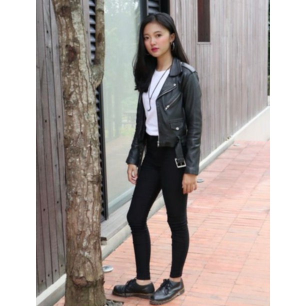 Jaket Kulit Wanita Ramones Changcuters Korea Blazer Crop